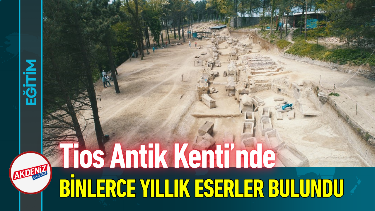 "Tios Antik Kenti'nin kuzeyinde ve güneyinde iki büyük nekropol alanı bulunmaktadır. Bunlardan en erken tarihlisi kuzey nekropolüdür. Bu nekropoldeki gömüler MÖ 6. yüzyıldan MS 7. yüzyıla kadar uzanan bir zaman dilimine tarihlendirilmektedir. Roma İmparatorluk Dönemi'nden kalma onlarca mezar odası ve şu ana kadar tespit edilmiş 154 lahit mezarın bulunduğu bu bölge oldukça önemlidir. Çünkü Türkiye'de nekropollere daha çok Akdeniz ve Ege'de rastlanılır. Çalışmalar sırasında mezarlarda 1.200'den fazla eser bulunmuştur. Orta Bizans Dönemi'nde de mezarlık kullanımının devam ettiği görülmüş ve bu dönemde basit kiremit mezarlar kullanılarak yapılan defin uygulamalarının yanında bazı oda mezarlar defin amaçlı kullanılmıştır. Kuzey nekropolü, bu özellikleri ile Karadeniz Bölgesi'nin en kapsamlı nekropol alanı olarak gösterilmektedir."