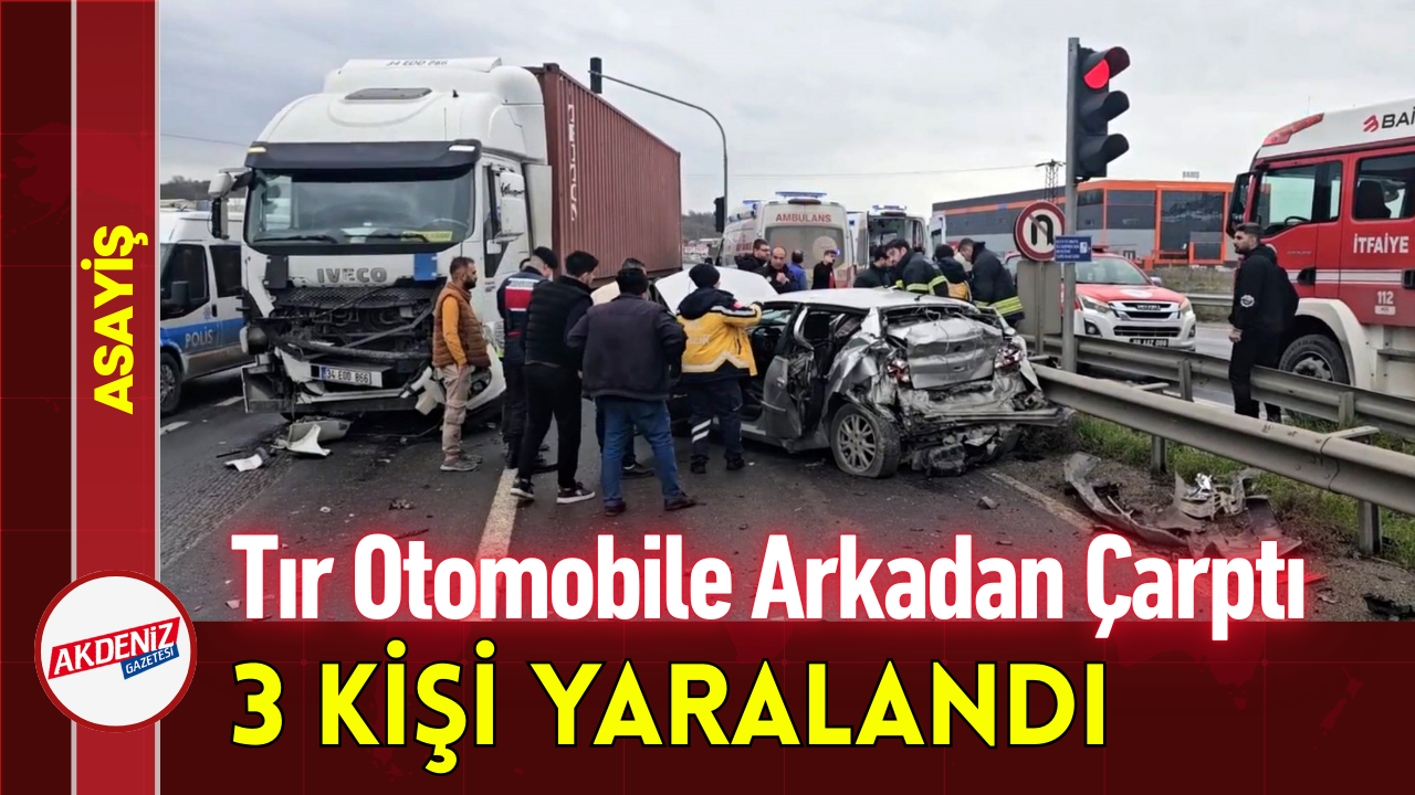 Tekirdağ’ın Çerkezköy ilçesinde tırın otomobile arkadan çarpması sonucu meydana gelen kazada 3 kişi yaralandı.