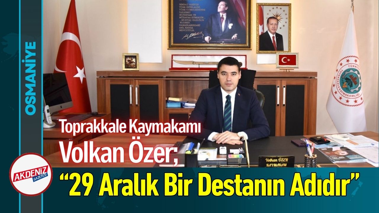 “Türkler, asırlardan beri hür ve bağımsız yaşamış, bağımsızlığı hayatın şartı kabul etmiş bir millettir. Binlerce yıllık tarihi boyunca varlığını daima bağımsız bir devlet uğruna adayan Aziz Milletimiz, Birinci Dünya Savaşı'nın ardından topraklarını işgale gelen düşmanlara karşı tüm yurtta olduğu gibi Toprakkale'de de tarihine yakışır bir direniş ortaya koymuş, 29 Aralık 1921'de düşmanı dize getirmeyi başarmıştır. Bu yüzden 29 Aralık, Toprakkale için yalnızca bir tarih değil, tarihten öte ilçemizin kurtuluş kaderini bin bir zorluk içinde tayin ettiği ve işgal güçlerine karşı yazdığı destanın adıdır. Toprakkale'nin kahraman evlatları, sahip oldukları manevi güç ve bağımsızlığa olan inançla, tüm yurtta başlatılan şanlı direnişin bir parçası olarak Kuva-yi Milliye gücünü oluşturmuş ve düşmanı topraklarımızdan çıkarmıştır. Böyle bir ecdadın torunları olarak bizlere düşen görev, ecdadımızın kutsal emaneti olan şehrimizi ve ülkemizi millet şuuruyla korumak, daha kalkınmış ve müreffeh yarınlara taşımaktır. Bu duygu ve düşüncelerle; Toprakkaleli hemşehrilerimin 29 Aralık Kurtuluş Günü'nü kutluyor, başta Cumhuriyetimizin Kurucusu Büyük Önder Gazi Mustafa Kemal Atatürk'ü, silah arkadaşlarını, tüm şehitlerimizi, ebediyete irtihal etmiş kahraman gazilerimizi minnet ve rahmetle, hayatta olan gazilerimizi de şükranla anıyorum.”