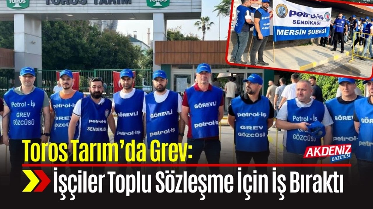 Adana ve Mersin'deki Toros Tarım işletmesinin Petrol İş Sendikası ile yaklaşık 10 gün önce başlayan TİS görüşmeleri olumlu sonuçlanmadı. Bunun üzerine Mersin'de sendika üyesi 120 işçi, TİS görüşmelerinin olumlu sonuçlanmaması üzerine grev kararı aldı. Akdeniz ilçesindeki Toros Tarım üretim tesislerinin girişine 'Bu iş yerinde grev var' yazısı asan Petrol İş Sendikası Mersin Şubesi üyeleri, bir süre davul zurna eşliğinde halay çekerek greve başladı.