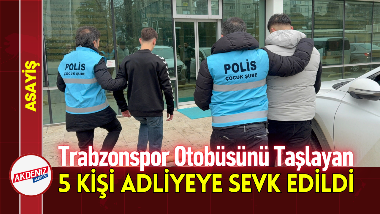 Samsun'da oynanan Samsunspor–Trabzonspor karşılaşması öncesi Trabzonspor takım otobüsünün taşlanmasıyla ilgili gözaltına alınan 4’ü çocuk 5 kişi adliyeye sevk edildi.