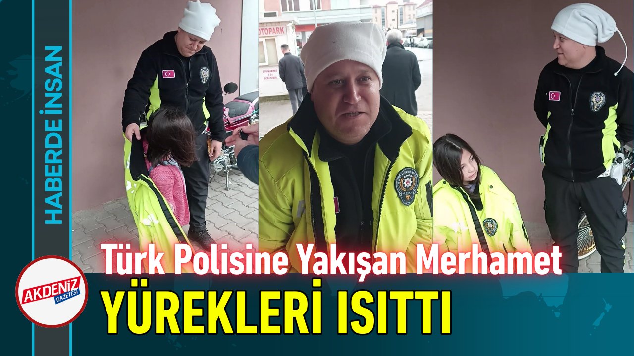 Ordu'nun Ünye ilçesinde görevli trafik polisleri, jimnastik kursuna giden 7 yaşındaki küçük kızın üşüdüğünü fark edince kendi montunu çıkarıp giydirdi. Polisin sergilediği örnek davranış, görenlerin içini ısıttı.