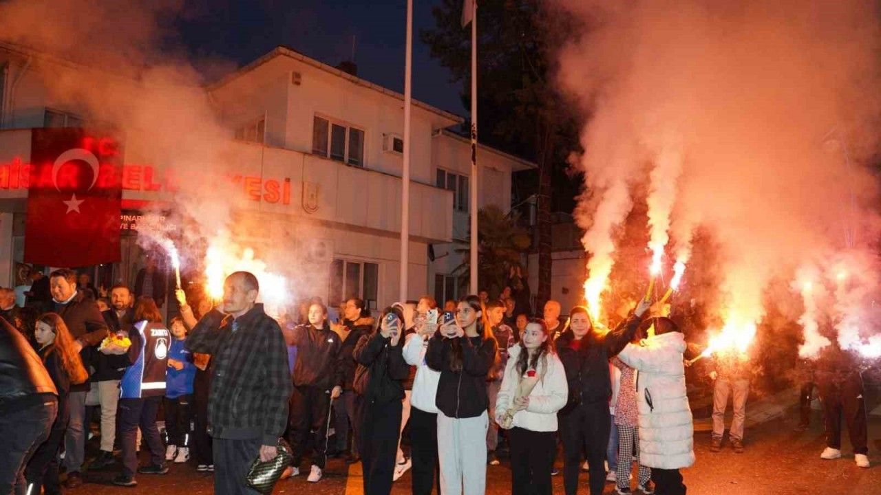 Vatandaşların yoğun katılım gösterdiği karşılama töreni, meşalelerle, davulların ritmiyle ve şampiyonluk halayıyla gece boyunca devam etti.