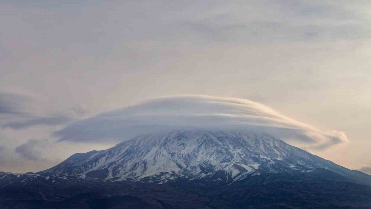 Ağrı Dağı’nda nadir görülen mercek bulutu görsel bir şölen oluşturdu.