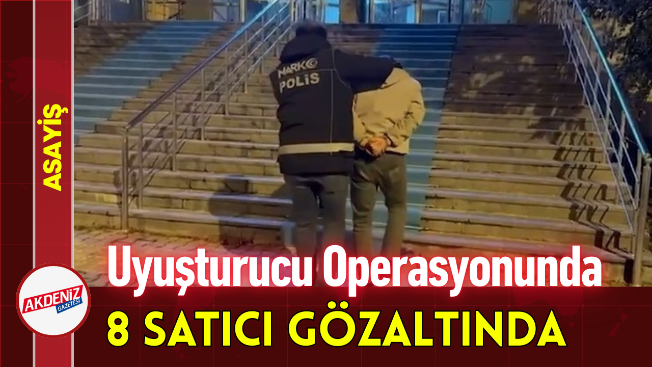 Edinilen bilgiye göre Narkotik Suçlarla Mücadele Şube Müdürlüğü tarafından şehirde uyuşturucu madde ticareti yapan sokak satıcılarına yönelik 3 ay süreli teknik ve fiziki takip süreci sonucunda yeterli deliller elde edildiği anda tespit edilen adreslere operasyon düzenlendi. 16 ekip, 64 personelin yanı sıra özel harekat ekiplerinin de destek verdiği operasyon neticesinde çeşitli miktarlarda uyuşturucu ve uyarıcı madde ele geçirildi. Operasyonda ayrıca N.Ö., E.K., F.A., S.D., M.O., A.K., Ü.K. ve T.C.Ç. yakalandı. Yakalanan 8 kişi 'uyuşturucu madde ticareti yapmak' suçundan çıkarıldıkları adli makamlarca tutuklanarak cezaevine teslim edildi.