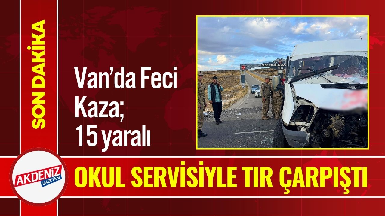 Van’ın Erciş ilçesinde akşam saatlerinde meydana gelen trafik kazasında, bir okul servisi ile bir tırın çarpışması sonucu 15 kişi yaralandı.
