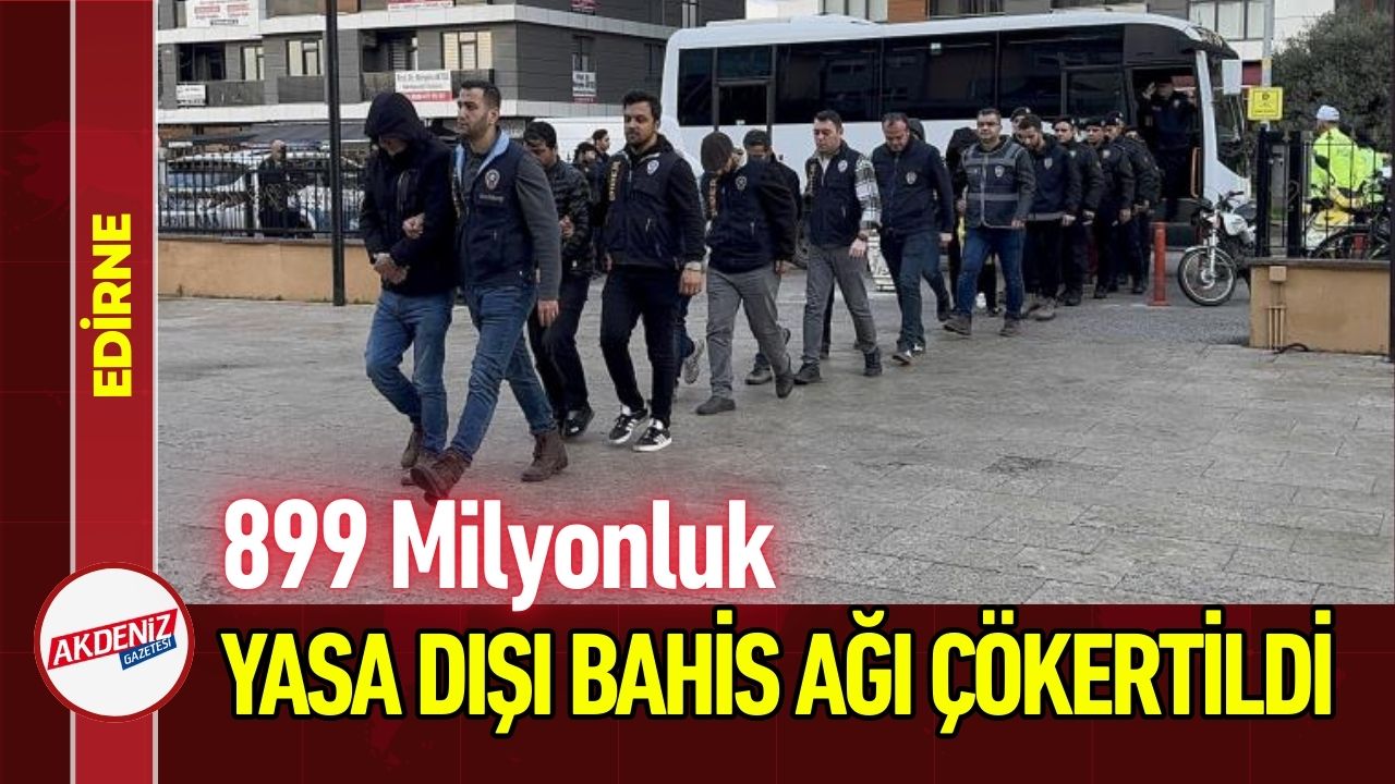 Edirne’de polis ekiplerinin düzenlediği geniş çaplı yasa dışı bahis operasyonunda 11 şüpheli tutuklandı. Edirne Emniyet Müdürlüğü Siber Suçlarla Mücadele Şubesi’nin yürüttüğü çalışmalar sonucunda tespit edilen kapalı devre bahis ağının banka hesaplarında toplam 899 milyon lira işlem hacmi bulunduğu belirlendi.