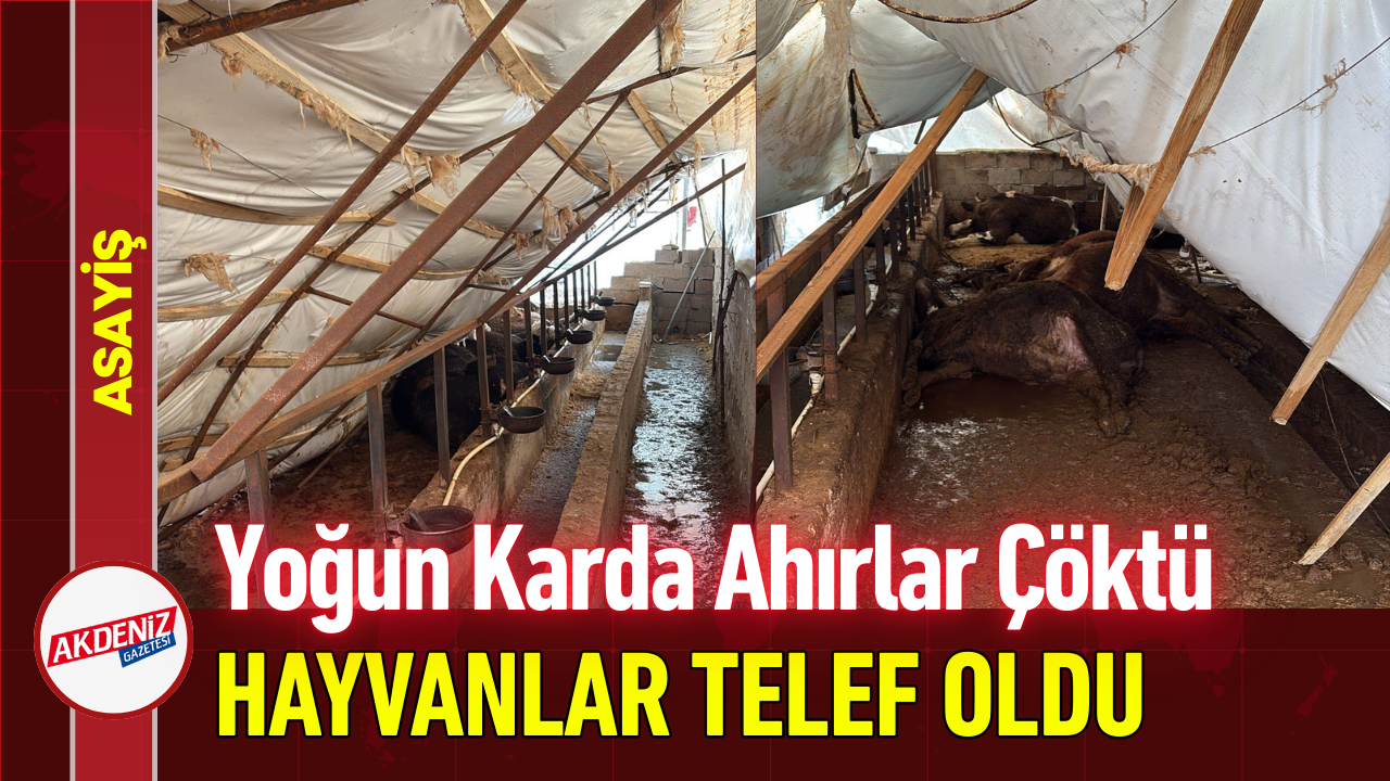 Karabük'te etkili olan yoğun kar yağışı nedeniyle üzeri çadırla kaplı ahırlar çöktü. Merkez ilçede yaşanan olayda 7 büyükbaş hayvan telef olurken, Safranbolu'da bir ahırda bulunan 15 küçükbaş hayvan ise son anda kurtarıldı.