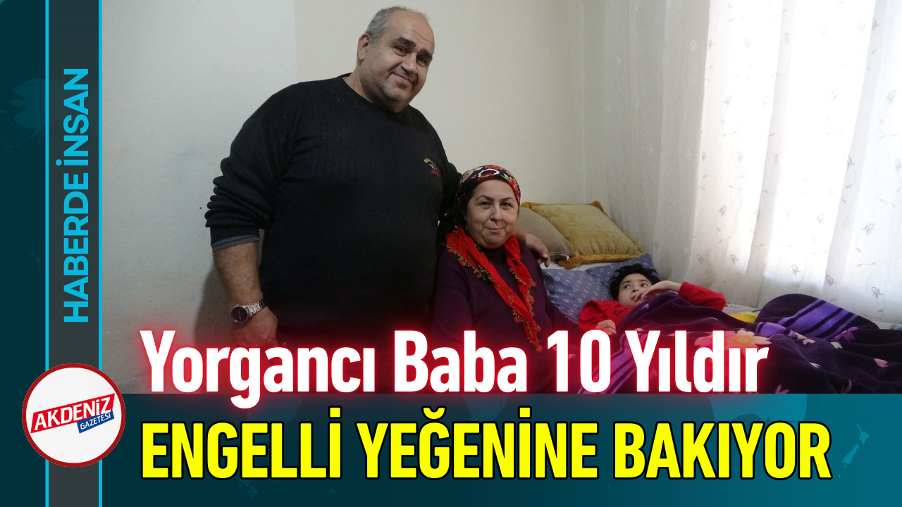 Antalya'nın Kepez ilçesinde baba mesleği yorgancılıkla geçimini sağlayan ve 2 çocuk babası Abdullah Karaahmet (55), insanlık dersi veren bir hikayeye imza atıyor. Karaahmet, yaklaşık 10 yıl önce kalp krizi sonucu baldızını kaybetti. Baldızının vefat etmeden önce 'Bana bir şey olursa kızım sana emanet' sözlerini vasiyet kabul eden Karaahmet, o dönem 17 yaşında olan yüzde 100 zihinsel ve bedensel engelli Gizem Nur'u (27) eşiyle birlikte üçüncü çocukları olarak evlat edindi.