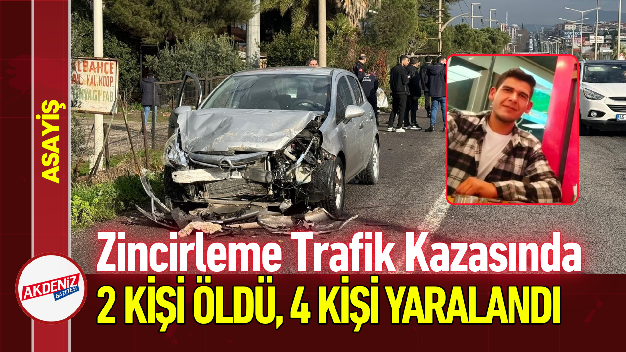 Manisa'nın Turgutlu ilçesinde kontrolden çıkarak karşı şeride geçen otomobilin iki araca çarpması sonucu meydana gelen zincirleme trafik kazasında 2 kişi hayatını kaybetti, 4 kişi yaralandı.